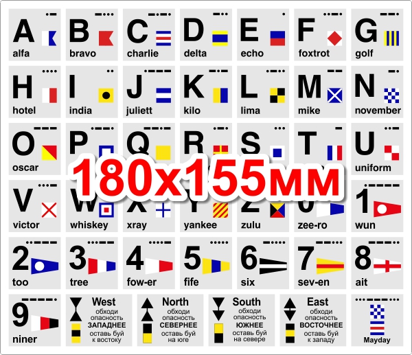 Модель 101714 Наклейка Фонетический Алфавит и Кардинальные знаки 180х155мм