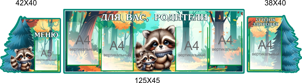 Модель 43392 Стендовая композиция Для Вас, родители в для детского сада в гуппу Енотики 2150*450мм