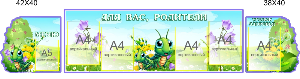 Модель 43385 Стендовая композиция Для Вас, родители в для детского сада в гуппу Кузнечик 2150*450мм