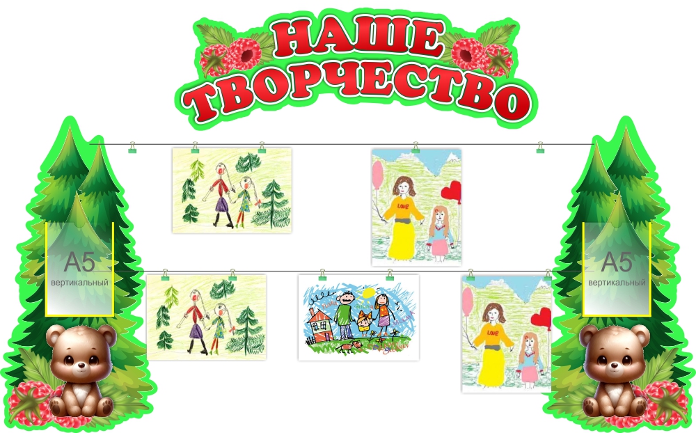 Гарантия качества Композиция из стендов "Наше творчество" состоящяя из двух боковых крыльев и шапки с надписью - "Наше творчество". Между крыльями композиции натягивается леска с зажимами для крепления детских работ в произвольном порядке. Позволяет разместить около 16 детских работ формата А4 вертикальных при расположении элементов композиции в предложенном в макете варианте. (Если элементы композиции расположить на стене с большим расстоянием, количество рисунков поместится большее) На боковых элементах расположены карманы А5 вертикальные для размещения описания детской выставки.