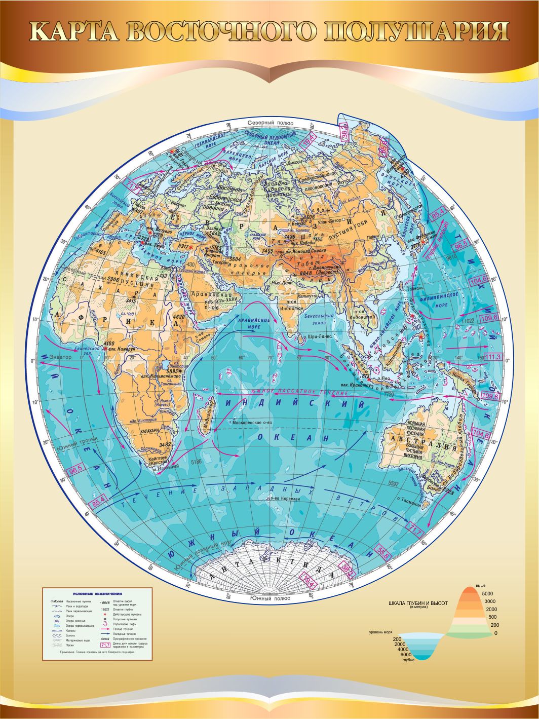 Модель 25181 Стенд Карта восточного полушария в золотистых тонах 900*1200 мм