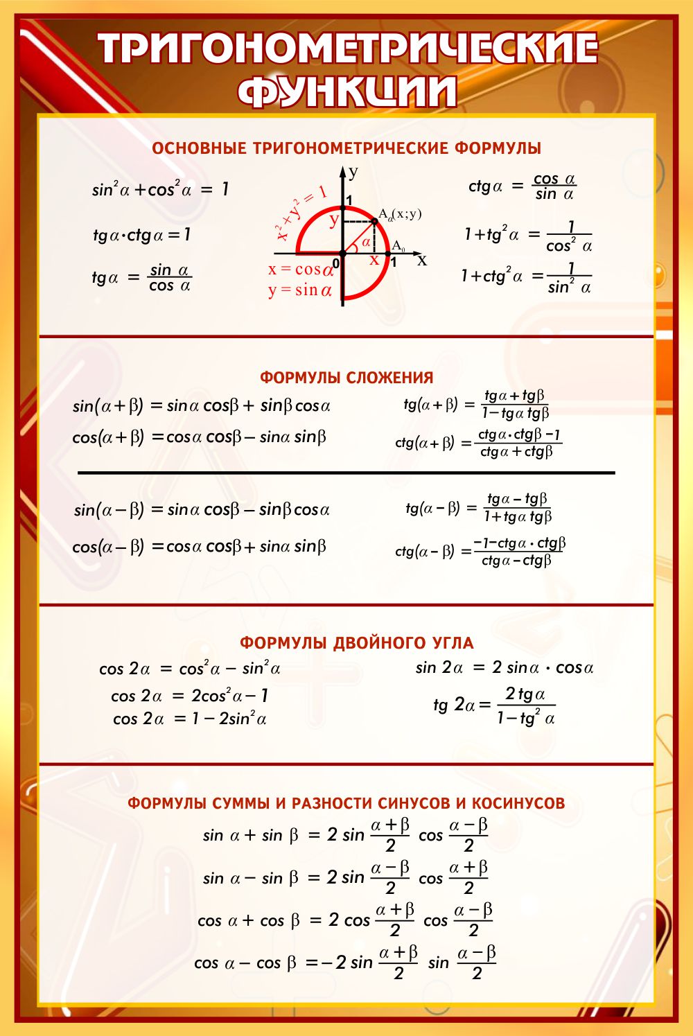Модель 25177 Стенд Тригонометрические функции в кабинет математики в коричневых тонах 430*650 мм