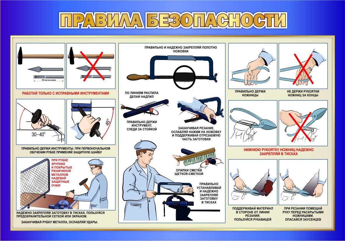Модель 25191 Стенд Правила безопасности в кабинет трудового обучения в синих тонах 1000*700мм