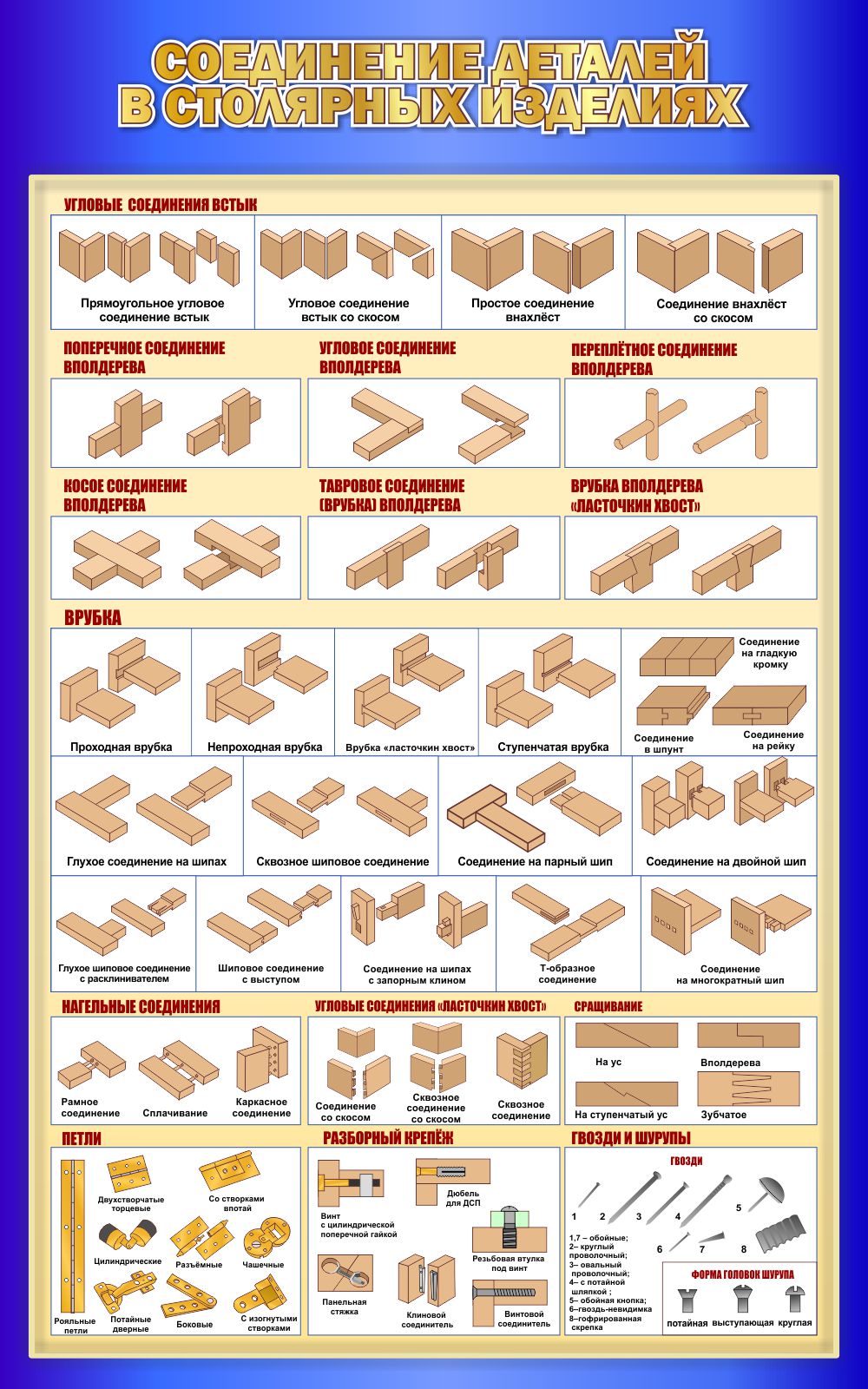 Модель 25195 Стенд Соединение деталей в столярных изделиях в синих тонах 500*800 мм