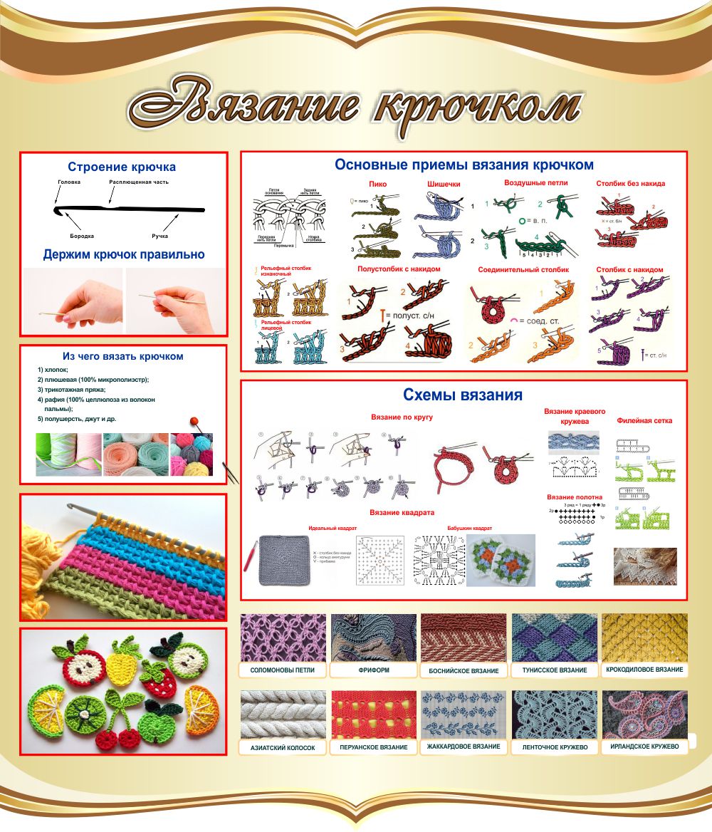 Модель 25215 Стенд Вязание крючком в золотистых тонах 770*900 мм